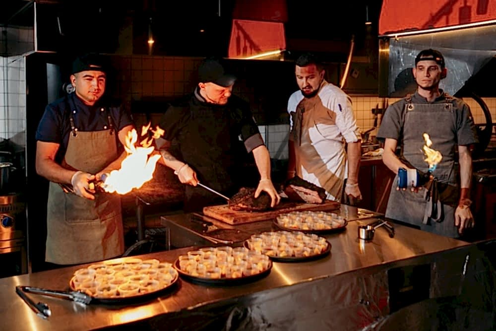 Сердце заведения - горячий цех, всегда открыт гостям. Здесь популярные и знакомые вам блюда обретают новые вкусы, пройдя через Pin-Up открытого огня: печь, гриль, вертел и смокер.